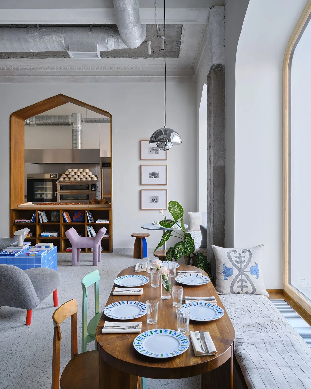 In the heart of Almaty, Kazakhstan's bustling capital, a remarkable metamorphosis unfolds as a once-utilitarian Soviet-era housing block undergoes a whimsical makeover to become a trendy Scandinavian-minded restaurant. Spearheaded by NAAW Studio, an architectural firm led by women, the project breathes new life into the dated 1950s structure, blending modern aesthetics with nods to its Stalinist past and Almaty's contemporary vibe.