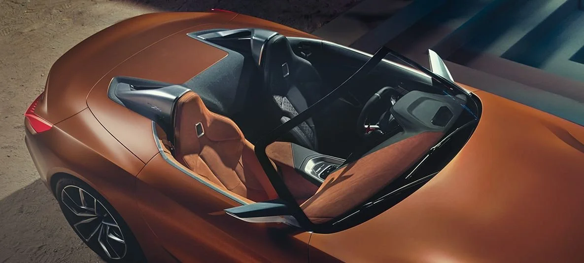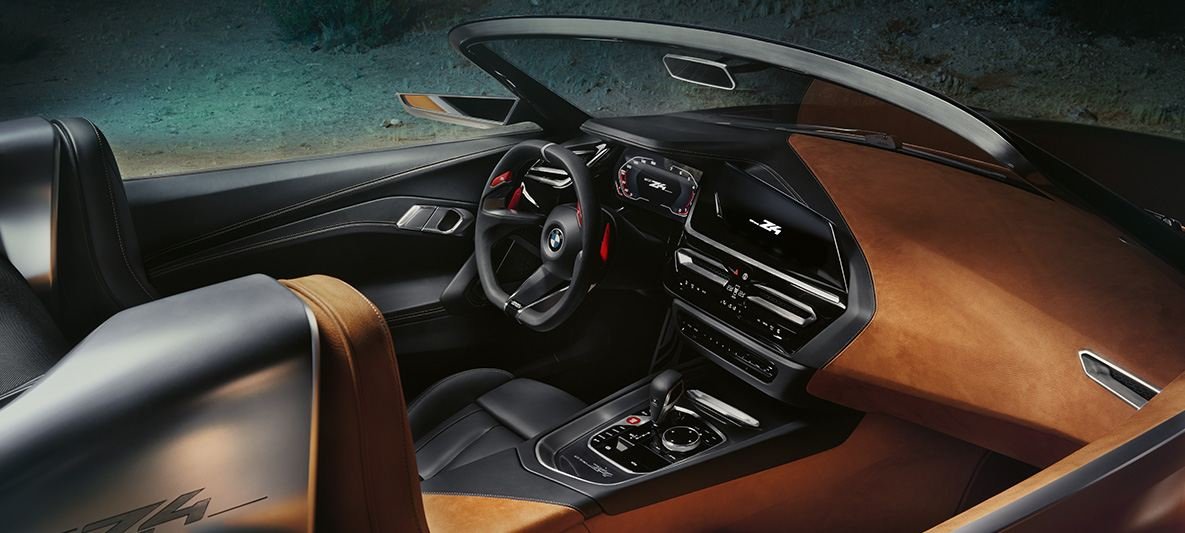 The new BMW Concept Z4 reveals itself as an open and wild roadster, exuding a strong character with its concise exterior and confident attitude. Every detail showcases its sportiness and thirst for freedom. The prominent air intakes at the front and the air diffusers on the hood beckon speed and the rush of wind. With their honeycomb structure and innovative mesh usage, the deep-set kidney grilles radiate athleticism. The new BMW Concept Z4 stands as a symbol of independence with its resolute form.