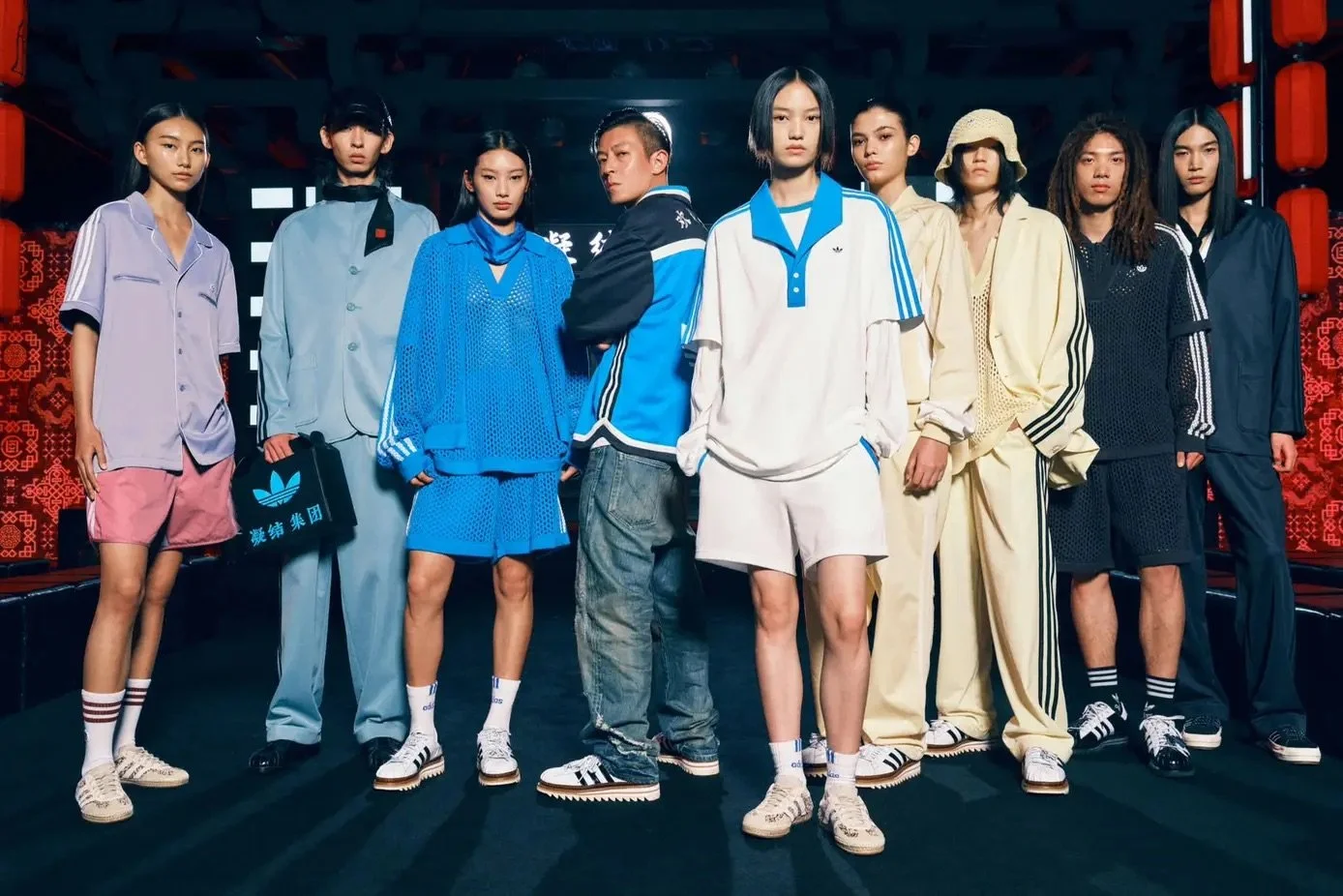 The runway show featured various items from the Adidas x Chen collaboration, including Superstar and Gazelle sneakers. Striped apparel was abundantly showcased, and a bamboo bag featuring the trefoil logo stood out.