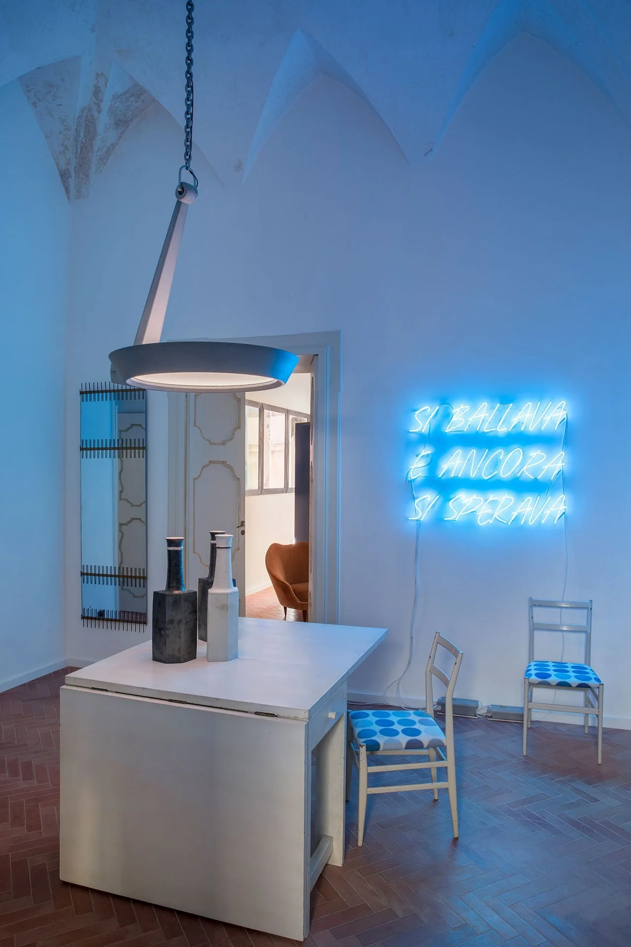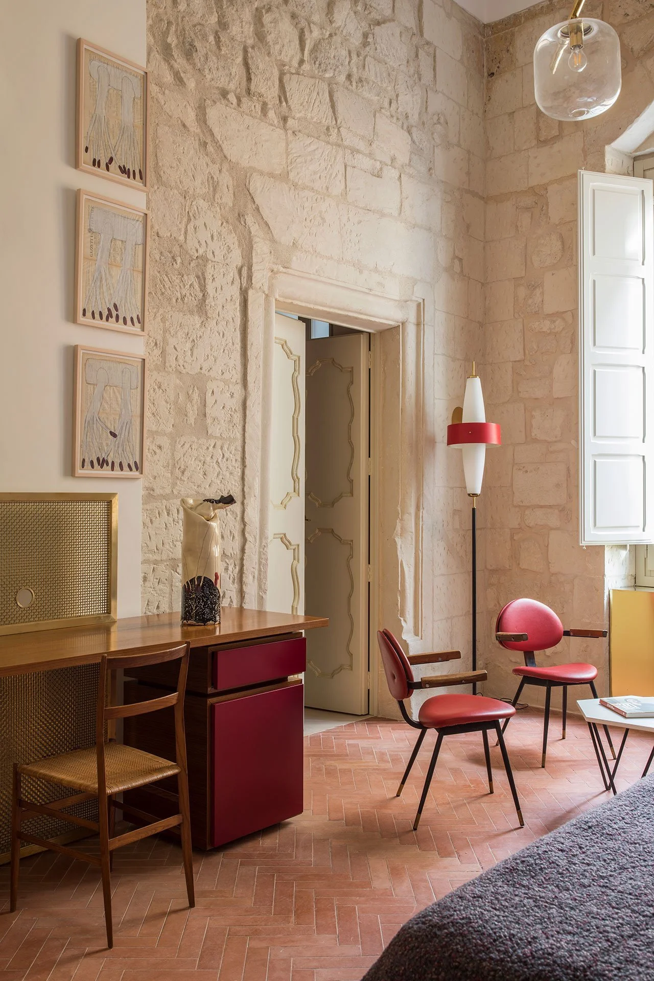 Palazzo Luce is a boutique hotel in Lecce, offering a unique experience that contrasts with the sophistication of Milan. Anna Maria Enselmi, a Milanese collector, transformed the 14th-century palazzo into a captivating residence that showcases her collection of 20th-century Italian design and contemporary art. The hotel is inspired by the modernist legacy of Gio Ponti and offers a paradise for art and design enthusiasts. The palazzo features a curated collection of Gio Ponti's furniture, alongside works by other renowned Italian modernists.